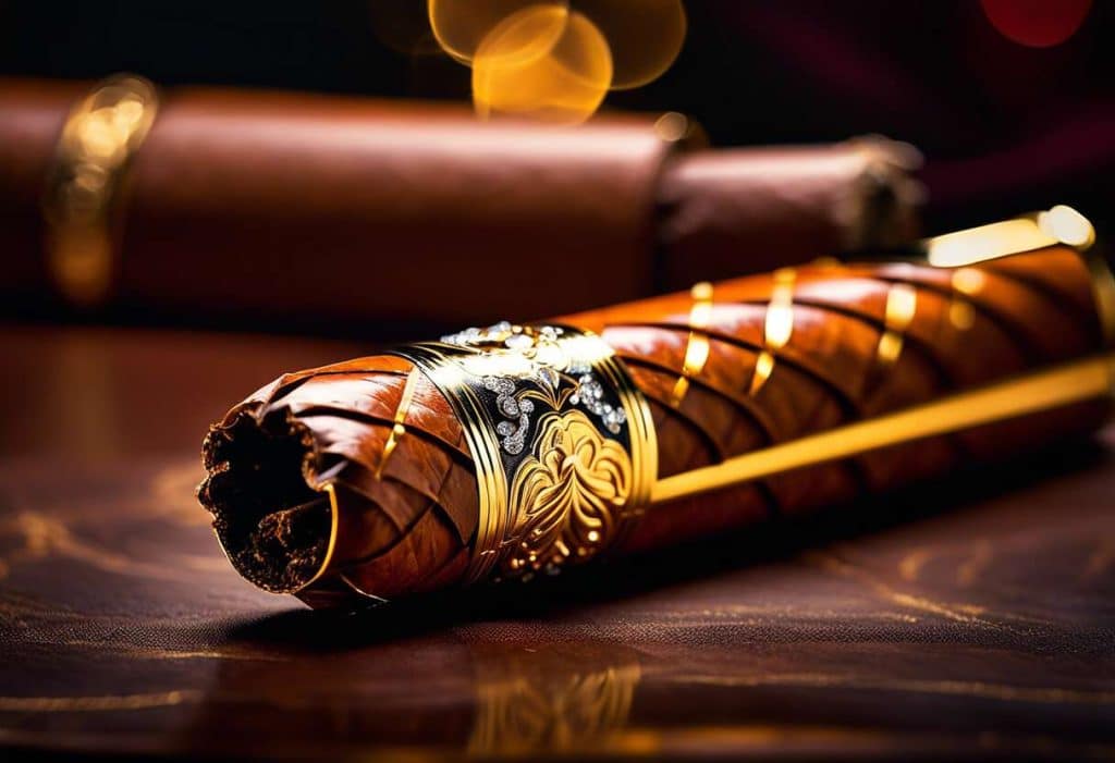 Con diamantes incrustados en su anillo y hojas tratadas con técnicas únicas, este puro no es para todos, sino para verdaderos coleccionistas y amantes de los puros de élite.